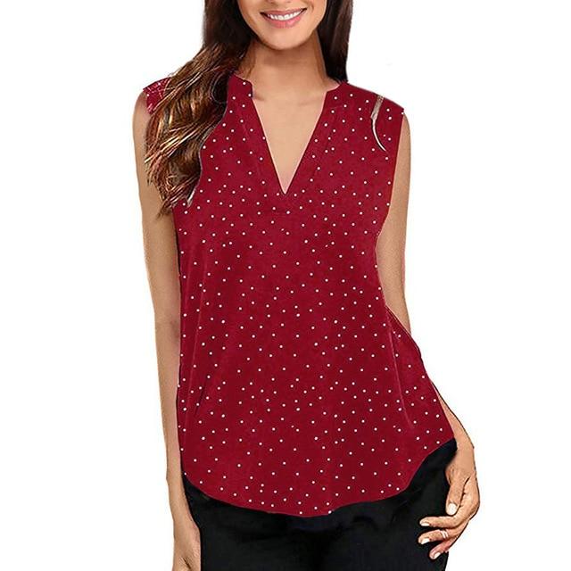 Summer Blouse Women Tops Sleeveless V Neck Dot Printed Casual Blouses Blusas Mulher Elegantes Shirt Blusas Mujer De Moda 2019