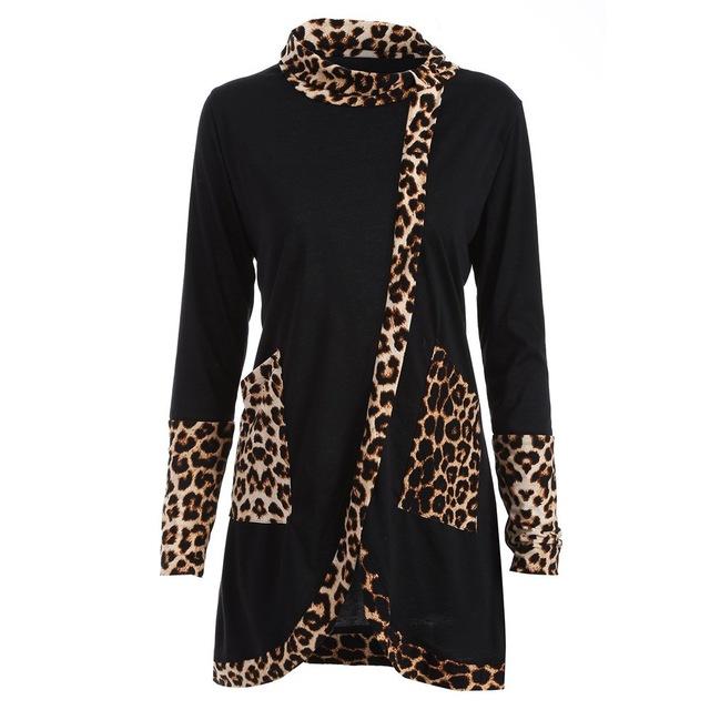 Autumn Women Tee Shirts Casual Leopard Print Cowl Neck Long Sleeve T shirt Women Tops Patchwork Shirt Tops Tee Shirt Mujer