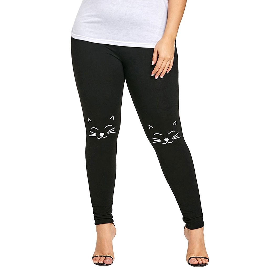 Feitong Fashion Women Pants Plus Size Pants Women Trousers Sport Pants Cat Print Knee Leggings Summer Trousers Pantalon Femme